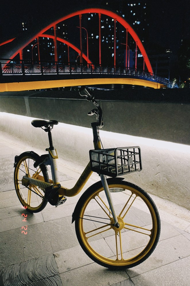 这周在经过一百小时连续待在家里后,今晚八点,终于坐不住,一股脑地冲出小区,解锁美团小黄单车,夜间暴骑五公里。