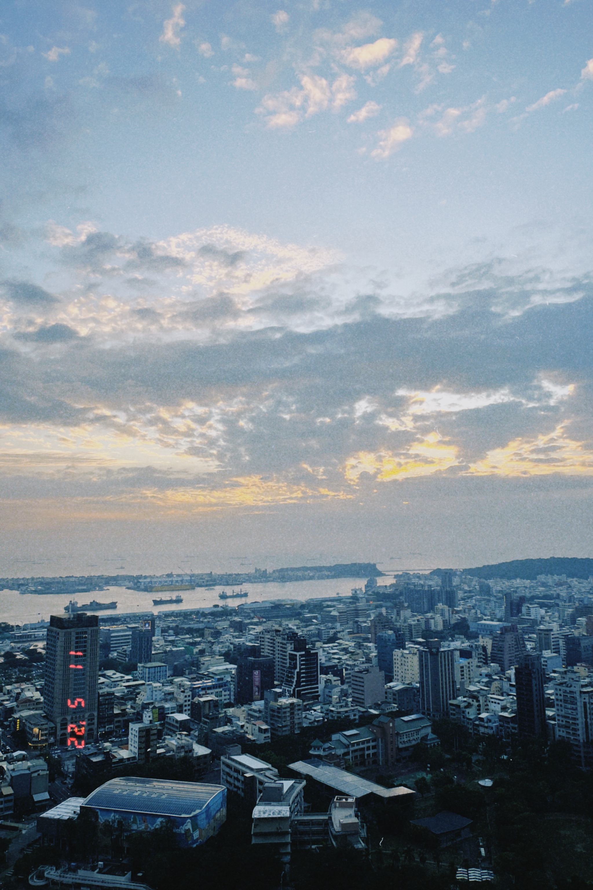 從34樓往下看的高雄港一景。